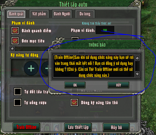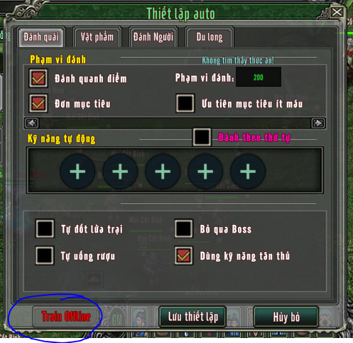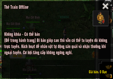 Kích hoạt để nhân vật tự động săn quái và nhận thưởng khi ngoại tuyến.