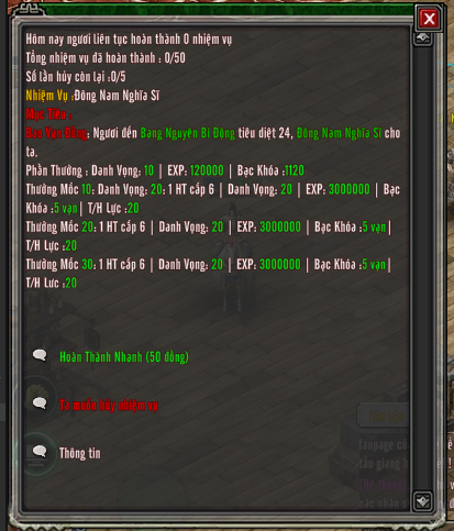 Ngoài ra đại hiệp có thể hoàng thành nhanh nhiêm vụ bằng đồng thường